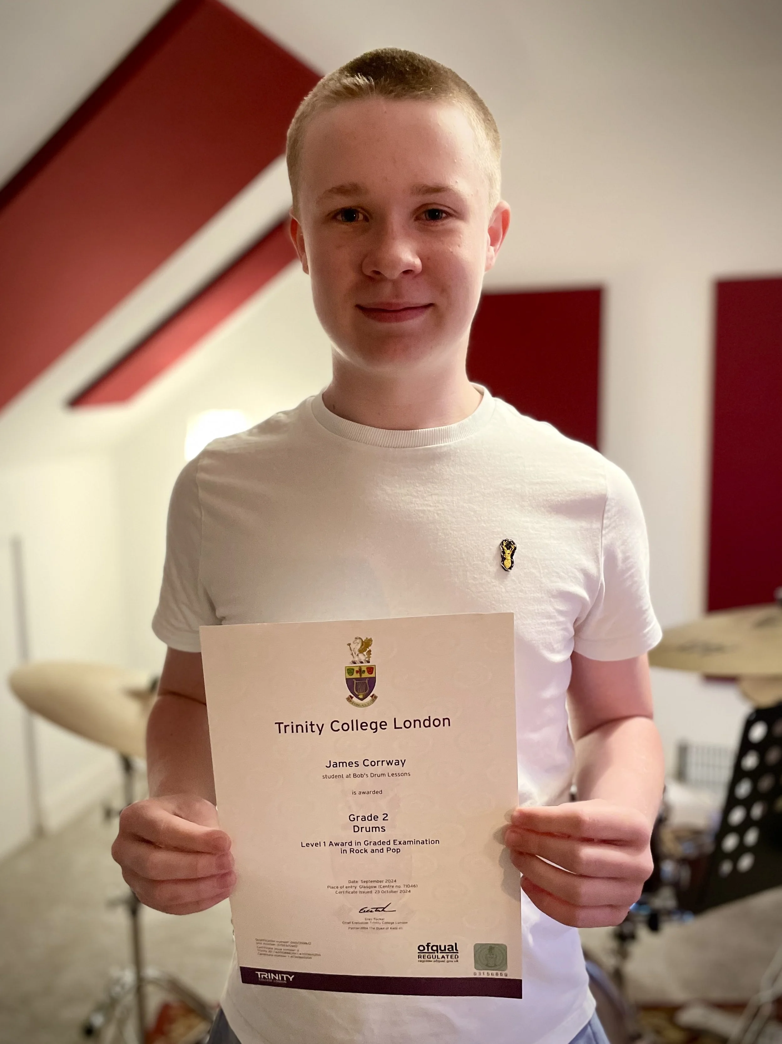 I’m a Registered Digital Exam Centre with Trinity College London. Students can purchase books directly from me, work through material in lessons and even take the final exam on the drum kit they’re used to playing.